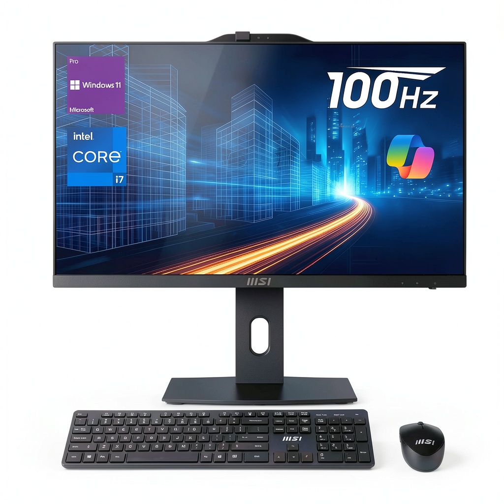 The MSI PRO AP272P is a 27-inch FHD All-in-One computer designed for high-performance computing needs. It features a 64GB DDR5 RAM and 2TB PCIe NVMe M.2 SSD for rapid data access and multitasking. Powered by the Intel Core i7-14700 processor with 20 cores and up to 5.4 GHz turbo frequency, it delivers reliable performance for demanding applications. The IPS display offers a 100Hz refresh rate and 178-degree viewing angle, reducing eye strain during extended use. Connectivity includes USB 3.2 Type-C, HDMI, DP ports, Wi-Fi 6E, and Bluetooth, with Windows 11 Pro pre-installed for enhanced productivity and collaboration.