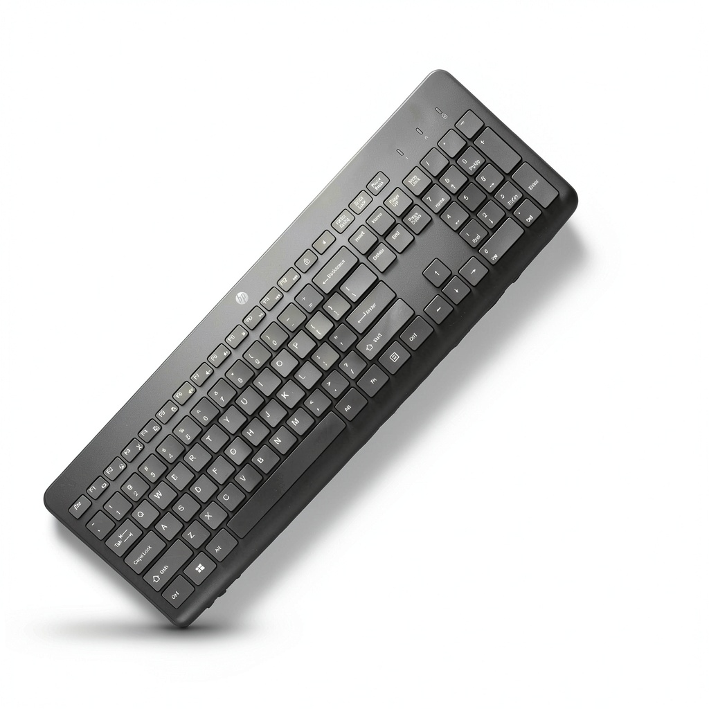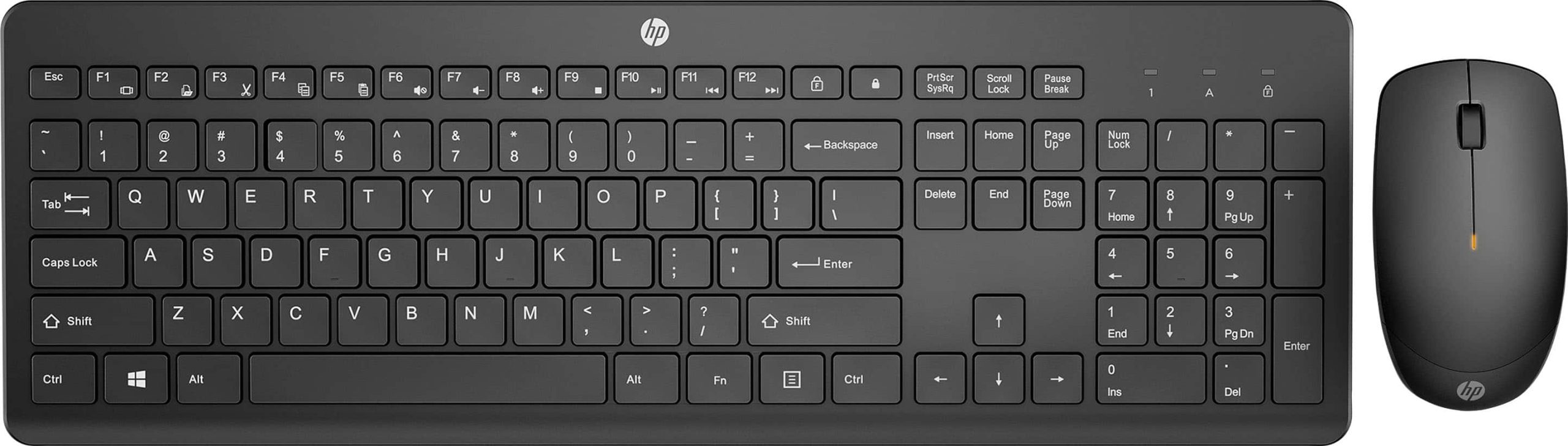 The HP 230 full-size wireless keyboard and mouse bundle in black is designed for everyday computing needs, combining ergonomic comfort with reliable performance. The keyboard features a chiclet design that reduces noise and enhances typing accuracy, while the mouse is built for durability and ease of use. Both devices operate on a 2.4GHz wireless connection, providing a lag-free experience without the hassle of cables. With a keyboard battery life of up to 16 months and a mouse battery life of up to 12 months, this bundle ensures long-lasting operation. Included in the package are the keyboard, mouse, product notice, warranty card, and R.E.D. RTF card for quick setup and support.