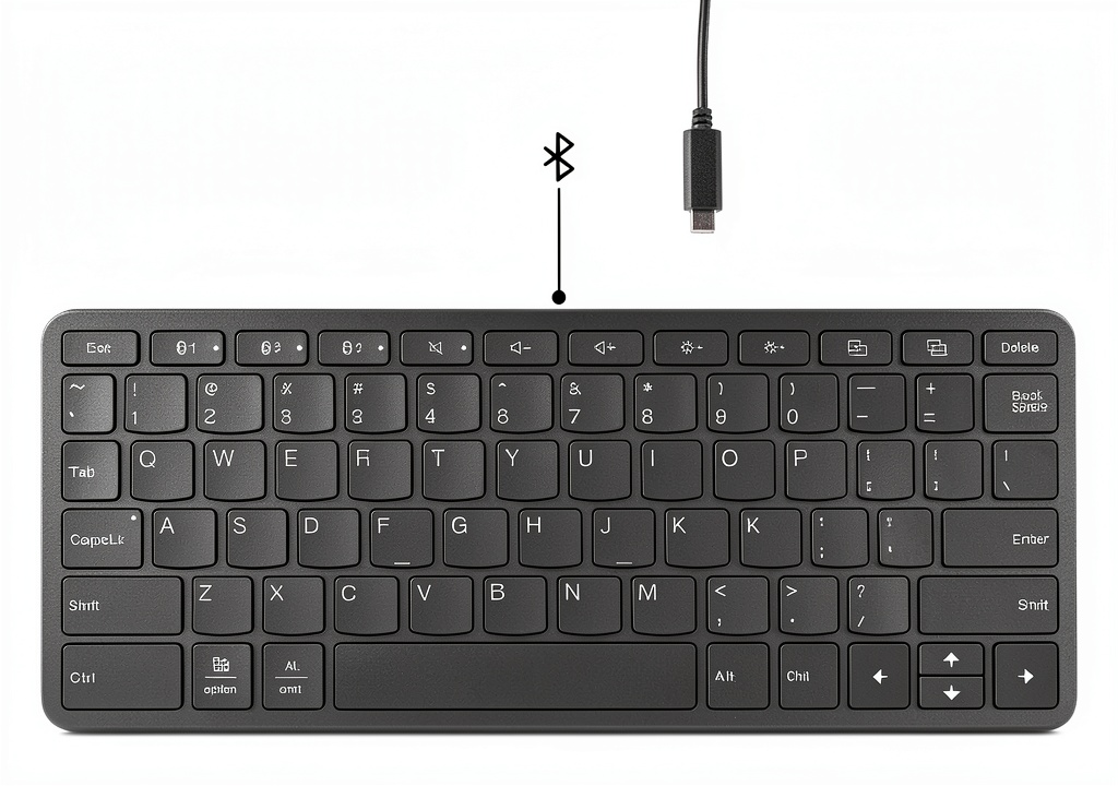 Use the dedicated function keys on the keyboard to toggle between up to three paired devices; the process is quick and requires no re-pairing for repeated use.
