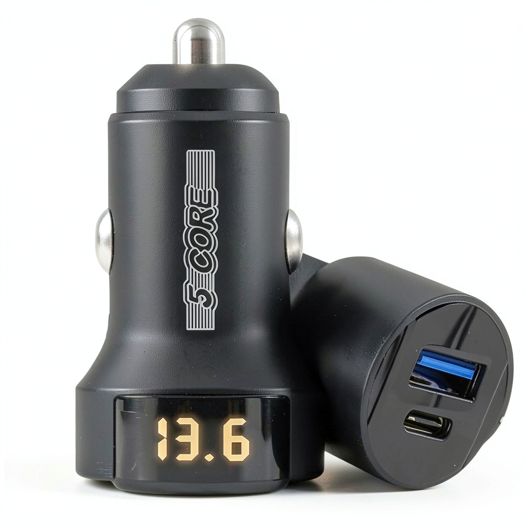The 5 Core Dual Port Car Charger is engineered for efficient power delivery on the road, featuring both USB and Type-C ports to charge two devices simultaneously. It supports Quick Charge technology with outputs of 3.6V-6.5V/3A, 6.5V-9V/2.7A, and 9V-12V/2A, enabling up to 4X faster charging than standard chargers. Built with a smart chip for automatic device recognition, it ensures optimal current for smartphones, tablets, and GPS units. The charger is compatible with 12V/24V vehicles and includes over-voltage, over-current, and temperature protection for safety. Its compact, durable design uses premium materials to resist wear and maintain a secure connection, while the soft LED light aids visibility in low-light conditions.