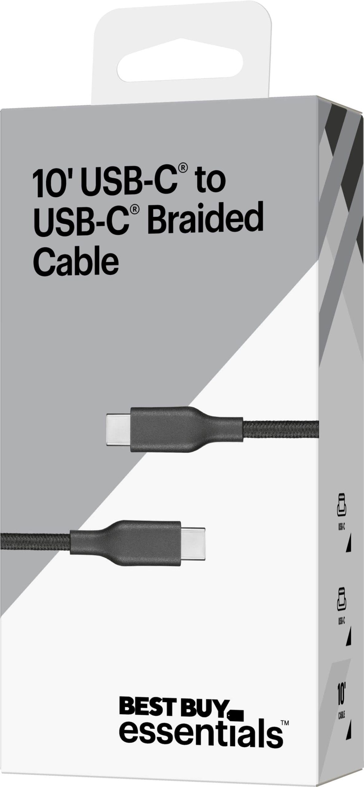 The Best Buy essentials 10 ft USB-C to USB-C Braided Charge-and-Sync Cable is engineered for modern USB-C devices, offering efficient power delivery and data transfer. Constructed with a robust braided nylon jacket, this cable resists tangling and wear, while slim connectors ensure compatibility with most protective cases. It supports quick charging and data syncing at speeds up to 480 Mbps, making it versatile for smartphones, tablets, and other electronics. Certified by USB-IF, it guarantees broad device compatibility and reliable performance in daily use.