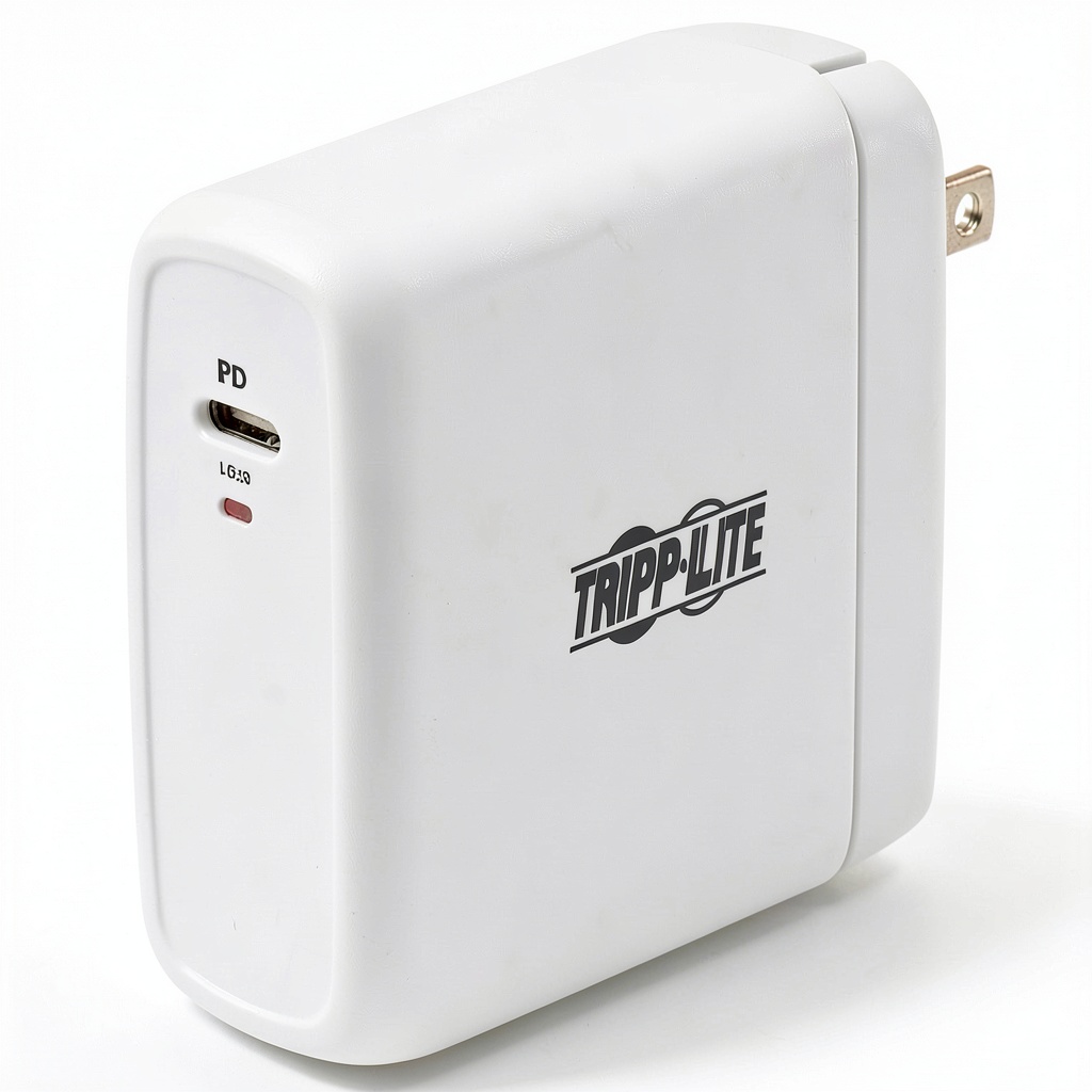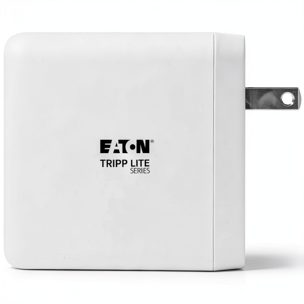 The Eaton Tripp Lite Series Compact 1-Port USB-C Wall Charger combines high-performance charging with a portable design. Utilizing Gallium Nitride (GaN) technology, this charger supports USB Power Delivery (PD) 3.0 up to 100W, enabling rapid charging for laptops, smartphones, tablets, and other USB-C devices. It features a folding plug, auto-sensing technology, and multiple safety protections, all housed in a compact white unit measuring just 8.5 cubic inches. Input voltage ranges from 120V to 230V AC, with output options of 5V/5A, 9V, 15V, and 20V DC, ensuring compatibility across various regions and devices.