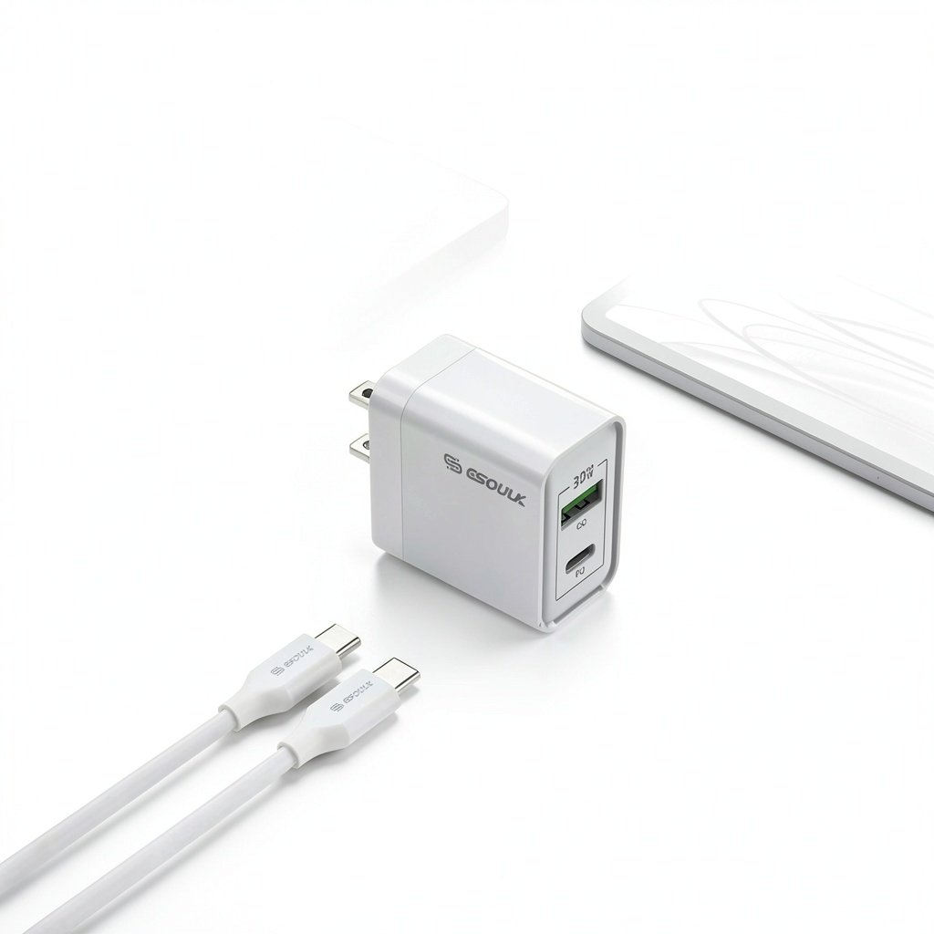 The Esoulk 30W PD & QC Fast Charge Wall Charger with 5ft USB-C to USB-C Cable provides high-speed charging for your smart devices, leveraging Power Delivery 3.0 and Quick Charge 3.0 technologies. It ensures efficient power delivery for smartphones, tablets, and other compatible gadgets, making it perfect for daily use at home or on the go. This charger is designed for reliability and convenience, supporting a wide range of modern electronics.