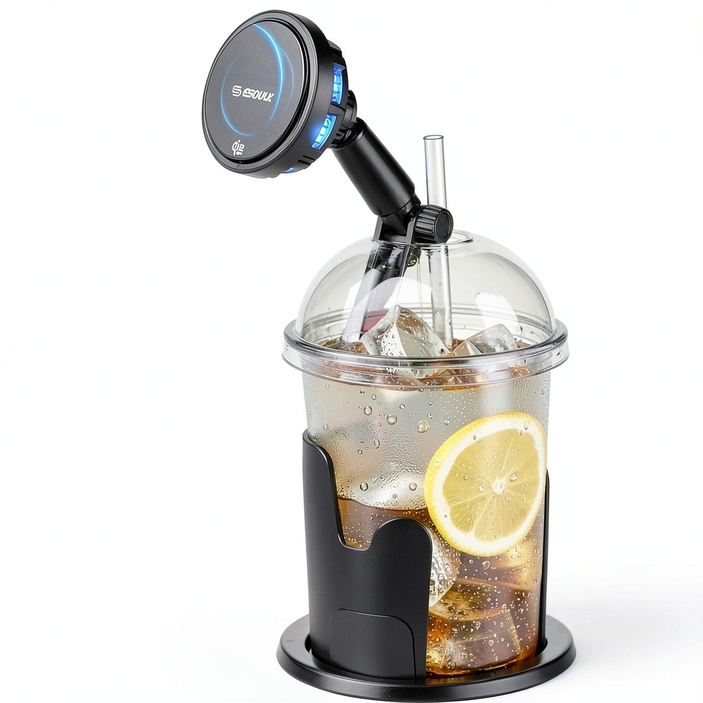 The Esoulk Qi2.2 25W Cooling Cup Holder Mount is a high-performance wireless charging solution designed for modern vehicles. It features ultra-fast 25W Qi2.2 charging, optimized for the latest iPhone models, and includes advanced TEC active cooling technology to dissipate heat and maintain consistent charging speeds. The mount has a 2-in-1 cup holder design with a U-shaped base that fits most standard car cup holders and accommodates mugs with handles. Constructed with 16 integrated N52 magnets providing up to 1,600g of pull force, it ensures your phone stays securely in place during sharp turns or rough terrain. The complete kit includes the magnetic cup holder mount, a high-power car adapter, and a USB-C charging cable for immediate use.