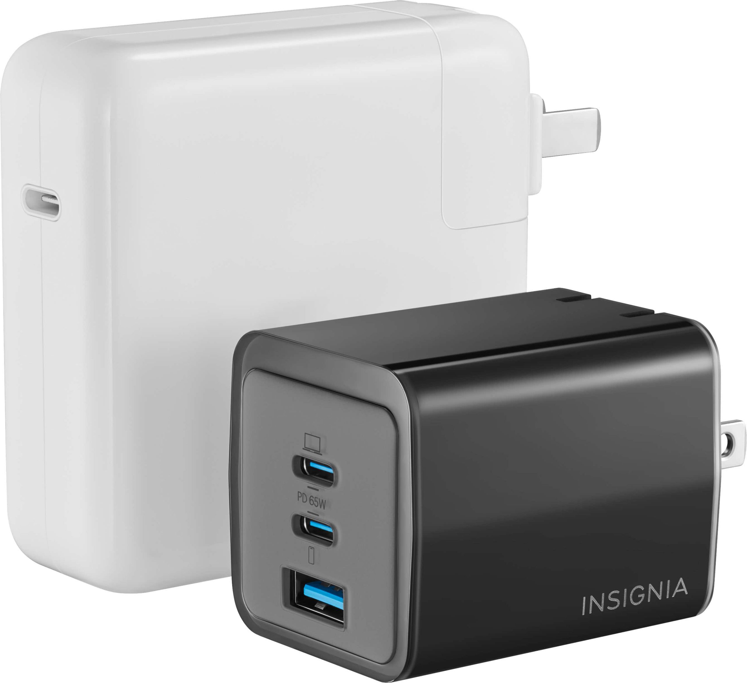 Insignia 65W Wall Charger showing compact design and foldable plug